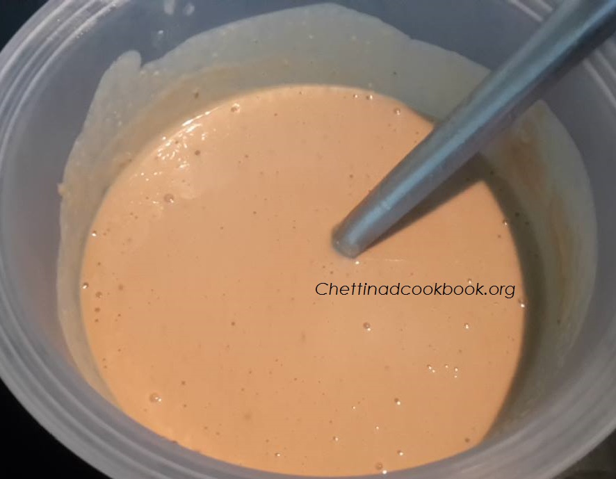Mix the batter well. It should have the consistency of a dosa batter. Pouring consistency.