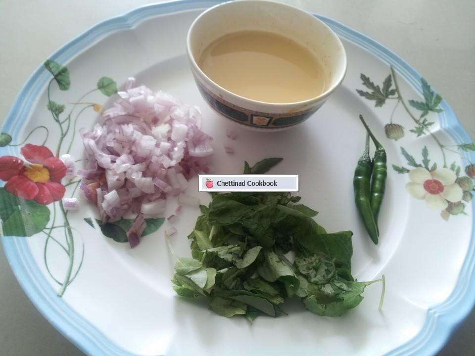 Any Greens -1 hand full I have used Mulai keerai in english we say Amarnath leaves. Even chopped mushroom can be added.