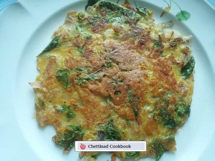 Heat dosa pan pour 1 Ladle of batter, smear 1 tsp of oil around the Omelette.