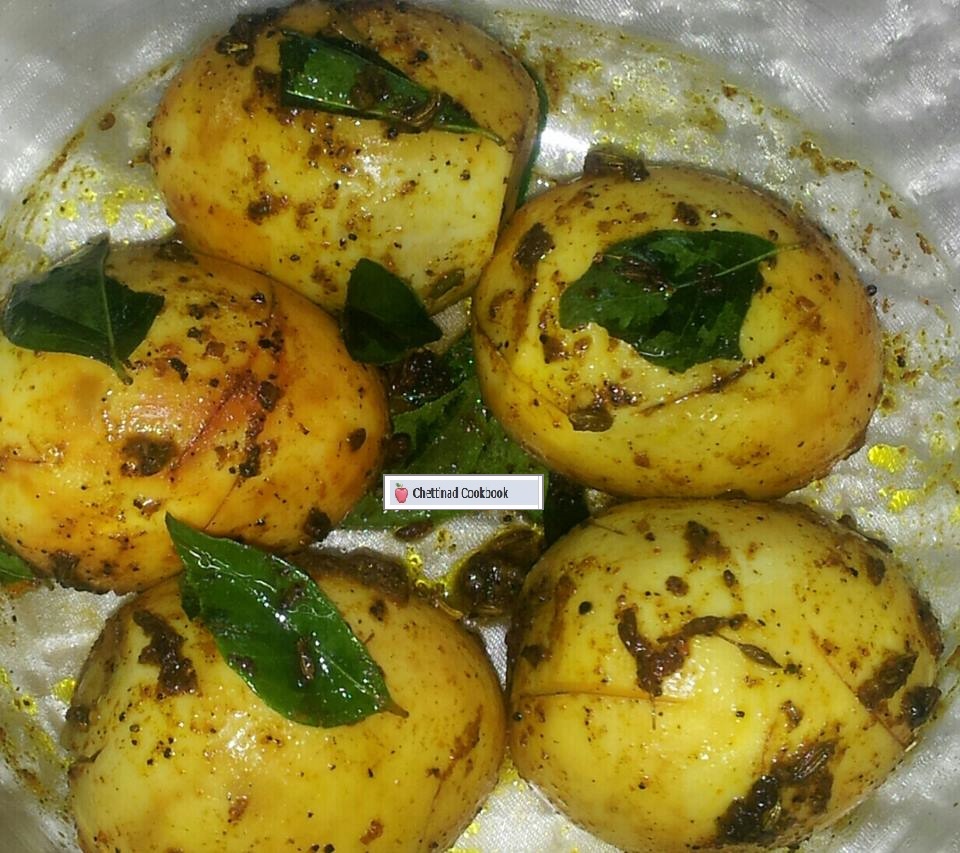Boiled Egg fry takes main place in chettinad feasts.It gives great look when served on the banana leaf .