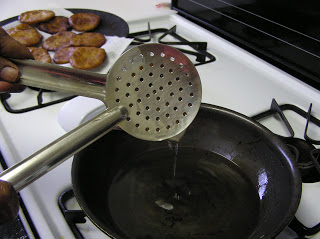 Slip it in slanting way on the paper towel or tray so that it will not stick to each other while it is hot.