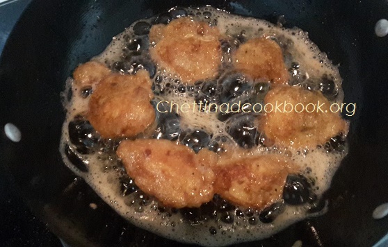 In a pan heat Oil, dip pre-cooked chicken pieces,drop in to the hot oil and golden fry.