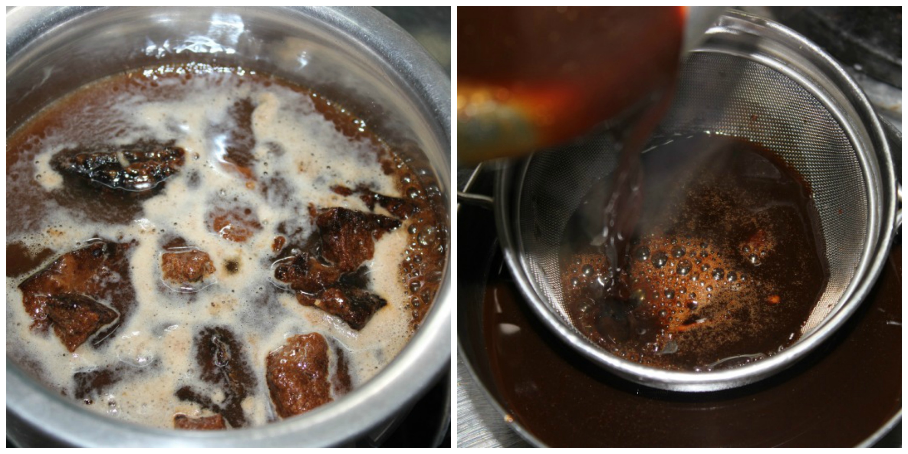 1.Soak red rice for an hour, Boil 6 cups of water, cook red rice, soft in a pot or cooker for 3 to 4 whistles. Mash when it’s hot to make it softer.
