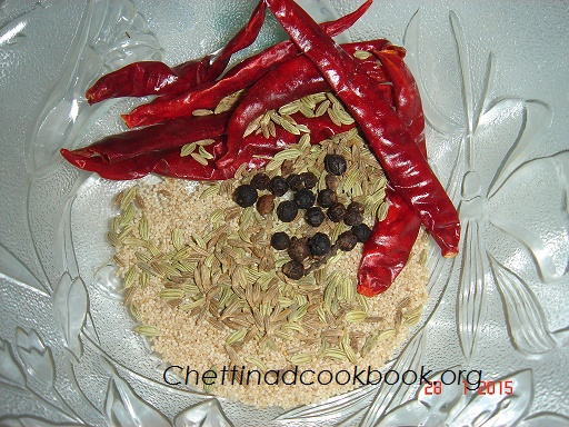 Masala powder is red chili, coriander seeds, cumin and saunf…..