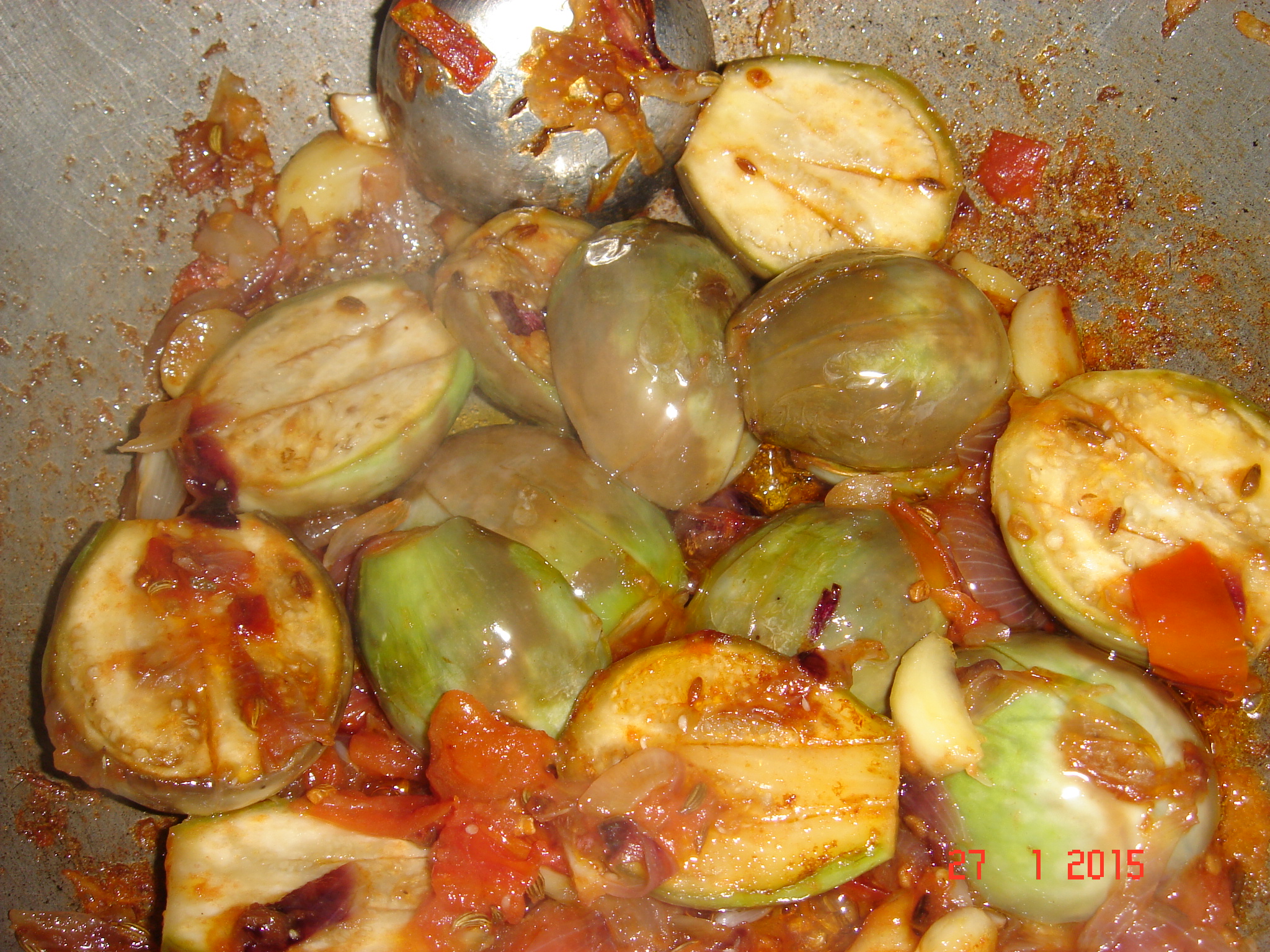 6. Remove from flame when brinjal gets cooked and oil floats on top.