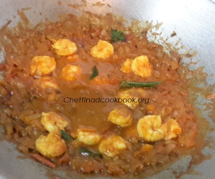 Let it get reduced and incorporate well,at this stage add pre-fried prawn,allow it to cook along with the masala not more than 3 to 5 minutes.