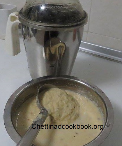2. Coarse grind to a thick batter,add sago finally for a second or 2.
