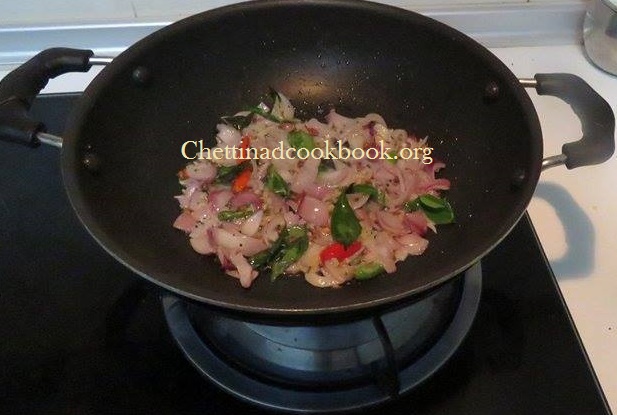 5. Add curry leaves, cut onion and ginger, saute for a while until you get a nice aroma.