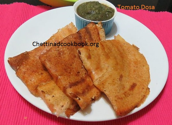 Dosa varieties are really interesting breakfast to all age people. An appealing look and delicious taste of this Tomato dosa will please us to have more numbers. Simple and flavourful tomato dosa can be served with pudhina chutney or it will be tasty by itself on adding chilli and aromatic garlic or ginger while grinding.