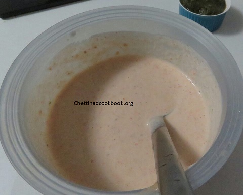 1. While grinding rice add tomatoes and grind to a smooth batter.