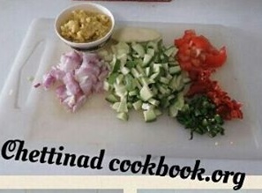 Cut onion green chillies and tomato.