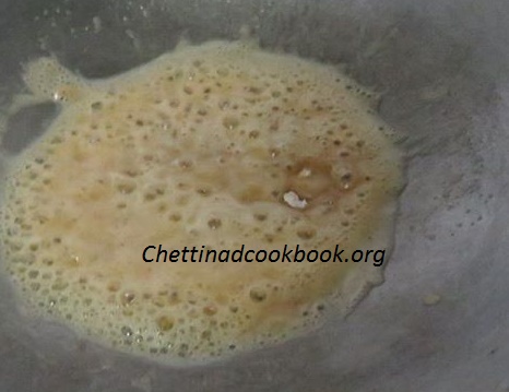 4.In the same pan, add wheat flour fry in medium flame to a golden brown. Care should be taken while frying wheat flour.