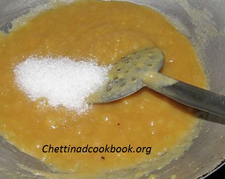 6. Stir it well cook in medium flame, add another tbsp of ghee in the middle of the process.