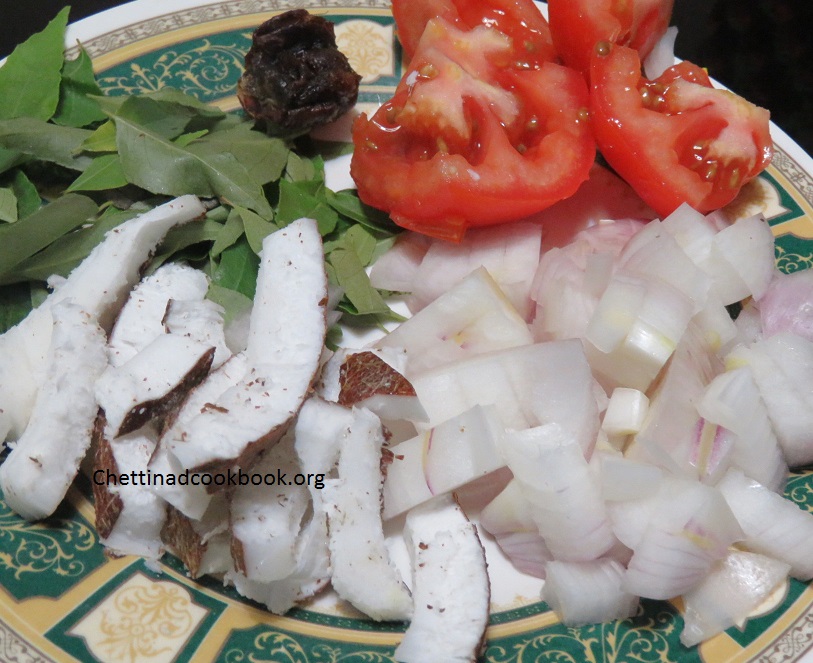 2. Now add Ingredient from the set -2, Chopped onion and curry leaves, saute for a while and add rest of the ingredients, saute all together.