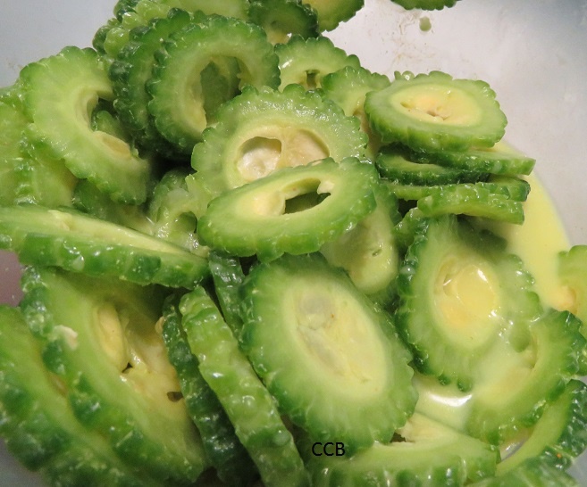Buttermilk or sour curd-1/4 cup this helps to reduce the bitterness of the vegetable