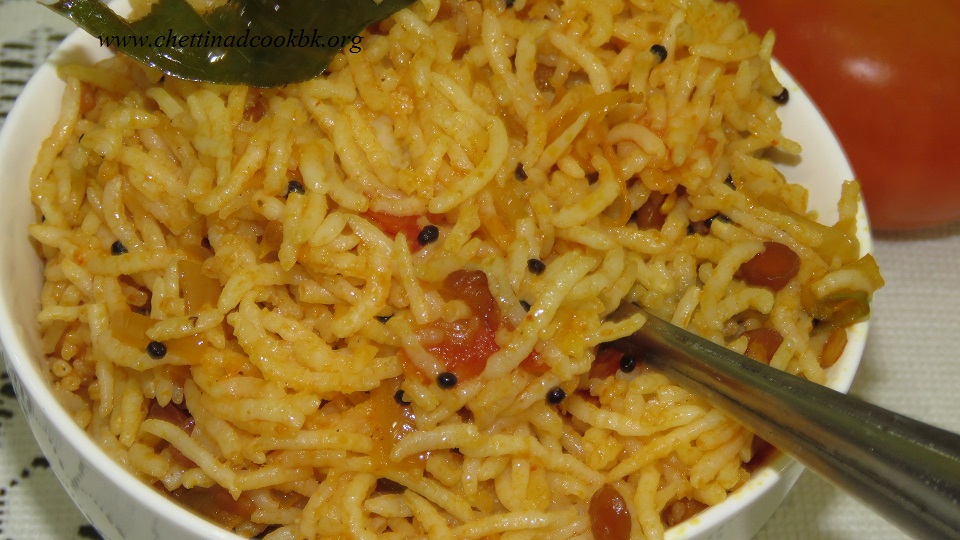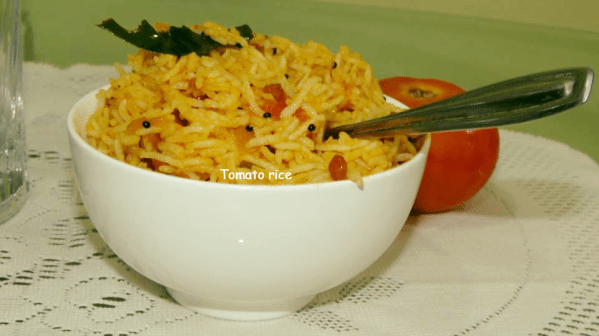 Tangy and mild spiced Tomato rice is a good combination with Potato and Brinjal, stir- fry or omelet. Tomato rice is one of the yummy South Indian special variety of rice which we pack for schools and offices to enjoy the meal with mild flavored. The natural color of red ripen tomatoes gives attractive color and succulent taste to this rice. Easy to prepare in the morning hours this Tomato rice mix can be prepared in early hand to mix with hot cooked plain rice.