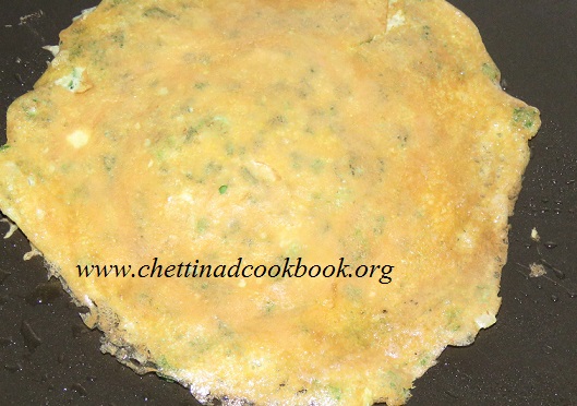 Heat the pan, sprinkle some oil and pour a ladle full of the beaten Egg mixture. Sprinkle cheese on it.