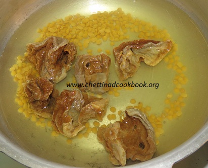Take a pressure pan add a tablespoon of toor dal and soaked Uppukandam cook for 3 to 4 whistles.