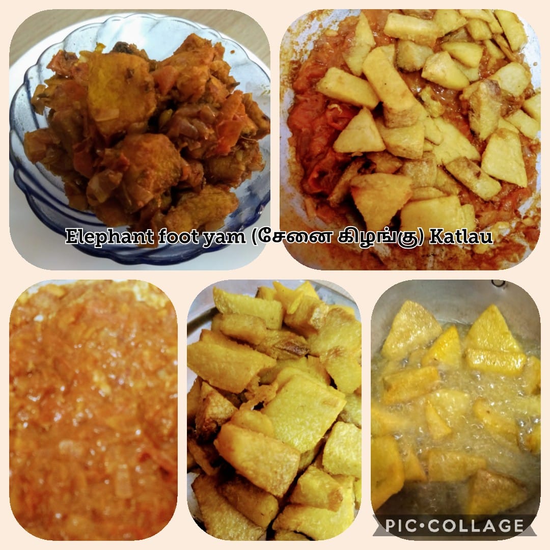 3. Heat 3 to 4 tbsp of oil shallow fry the partially boiled elephant yam to golden roasted, in batches.