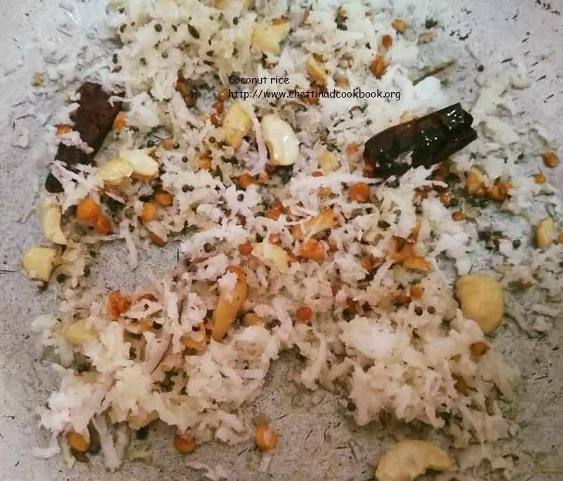 1. Wash and soak rice for 10 minutes cook with 2 cups of water. Spread cooked rice in a wide bowl to normal temperature. To enhance the richness of coconut flavor, you can boil rice in coconut milk+ bay leaves can be added while cooking rice you can remove the leaf before seasoning. it gives a nice aroma to the rice.