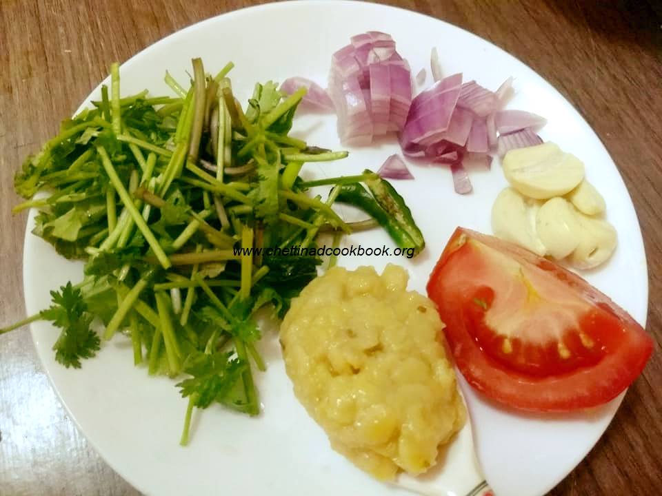 Coriander stem, Mint stem ( Pudhina) Curry leaves-1 cup