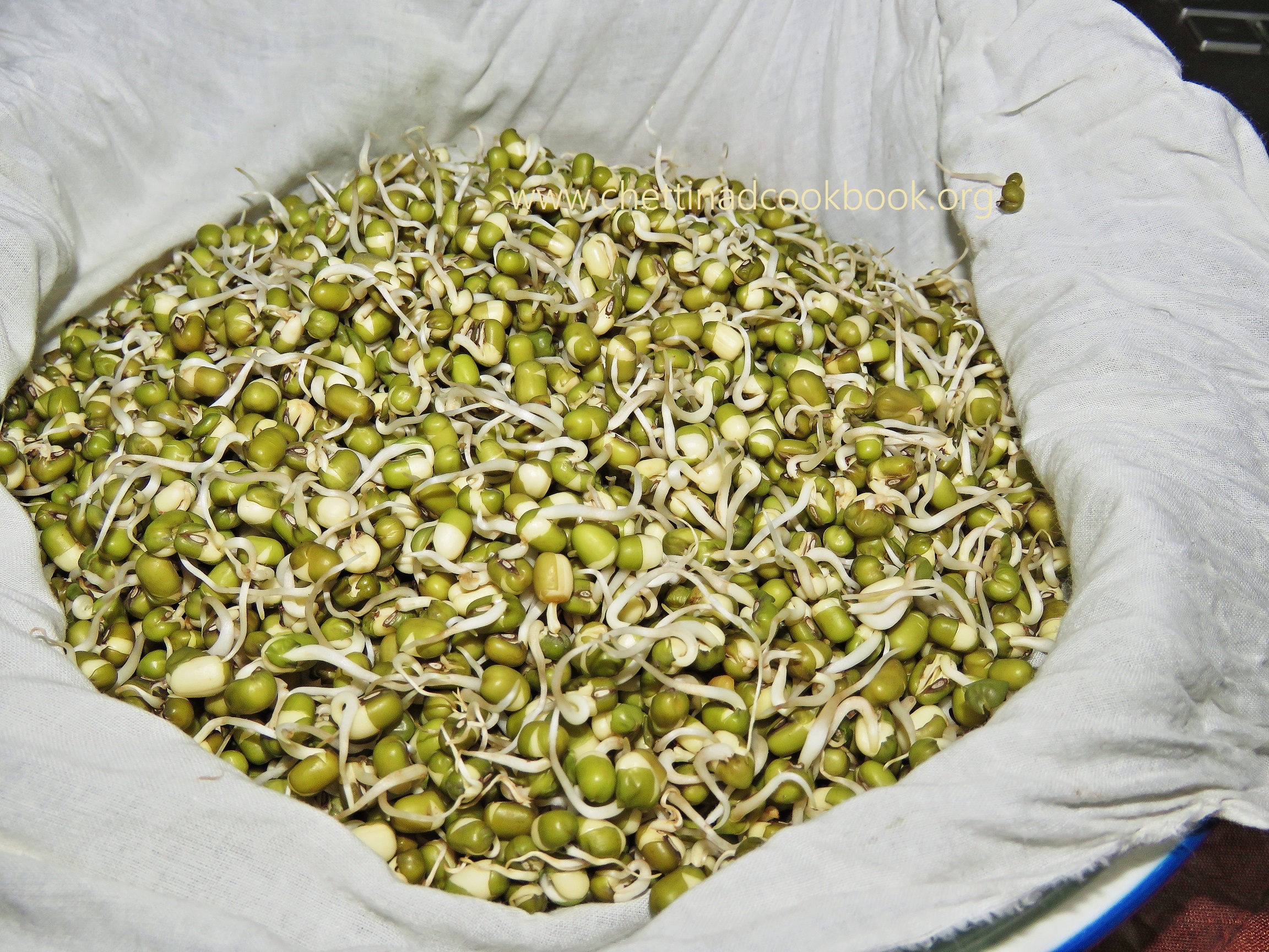 Rinse, and drain, take a (cheese cloth) cotton cloth drop these soaked lentils and secure with a thread or band.