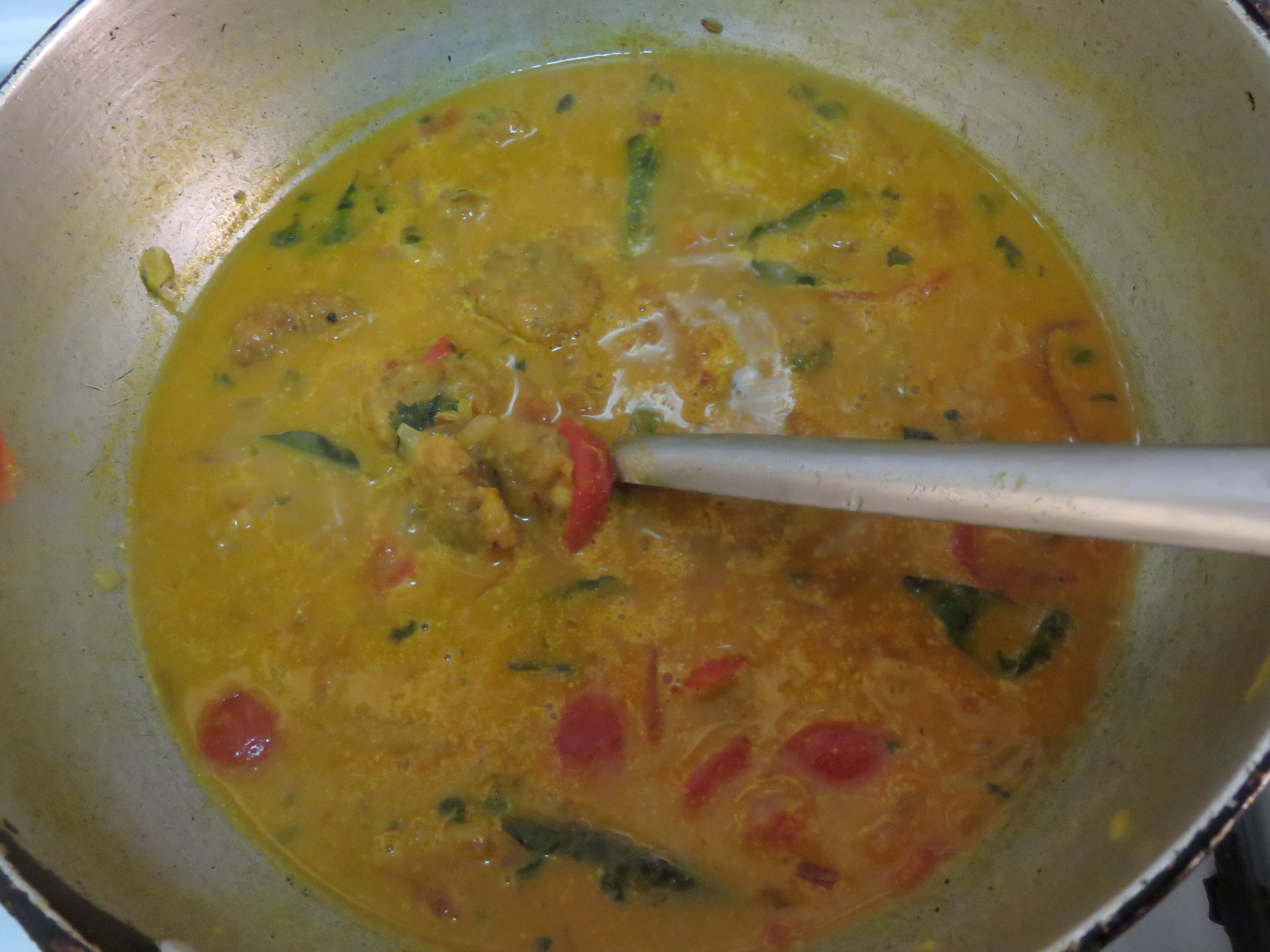 Finally, add coconut milk 1 cup or grind 1/4 cup of coconut and add to the gravy mix well let it boil now time to add fried (steam cooked) vada to the boiling curry.