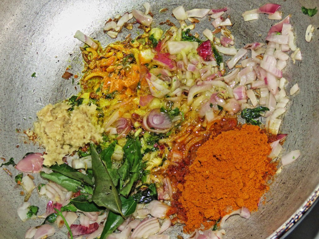 Allow it to absorb the curry for a minute and switch off. Sprinkle some curry leaves and serve.