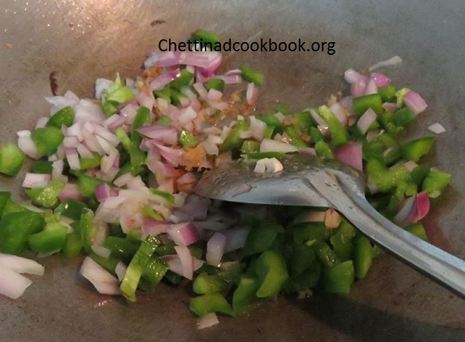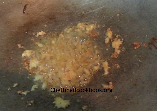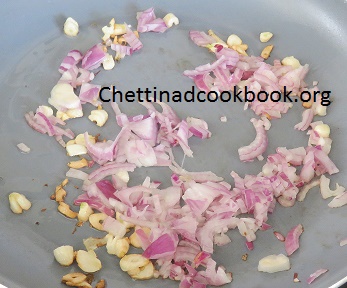 3. Heat pan, add 2 tsp of oil and saute minced garlic, once it becomes slightly brown add the chopped onion and saute for a while.