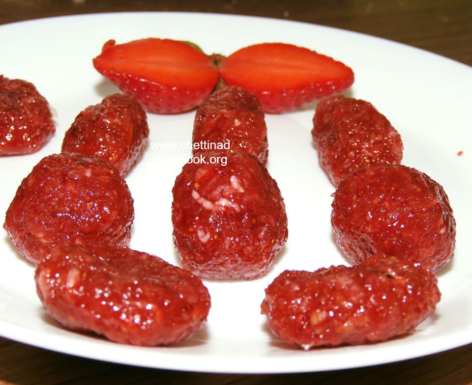 What a wonder!!! Its attractive natural colour and aroma which enhances the taste of this sweet, very simple and easy to make with few ingredients and minutes of effort. Strawberry flavour with coconut and sugar no words to explain better try and enjoy this recipe. A real taste of strawberry delight